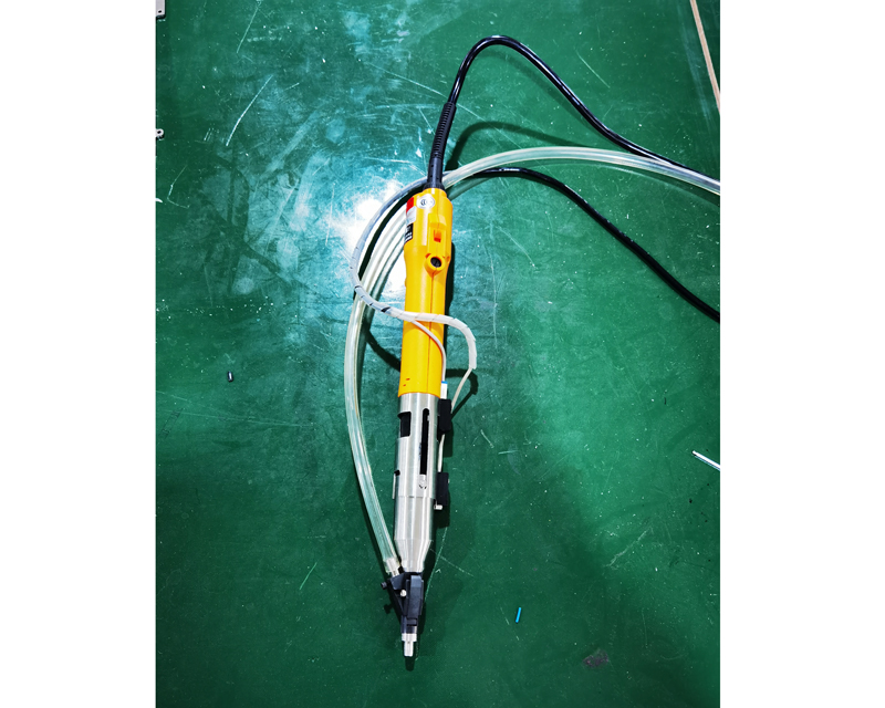 6.電批達(dá)到預(yù)設(shè)的扭力自動(dòng)停止后提起電批到安全高度松開,進(jìn)行第二次供料螺絲在夾頭處抱住,進(jìn)行鎖第二粒螺絲時(shí)對(duì)準(zhǔn)孔位下壓扭力到電批停止,提起手持電批到安全高度后松開觸發(fā)吹螺絲;